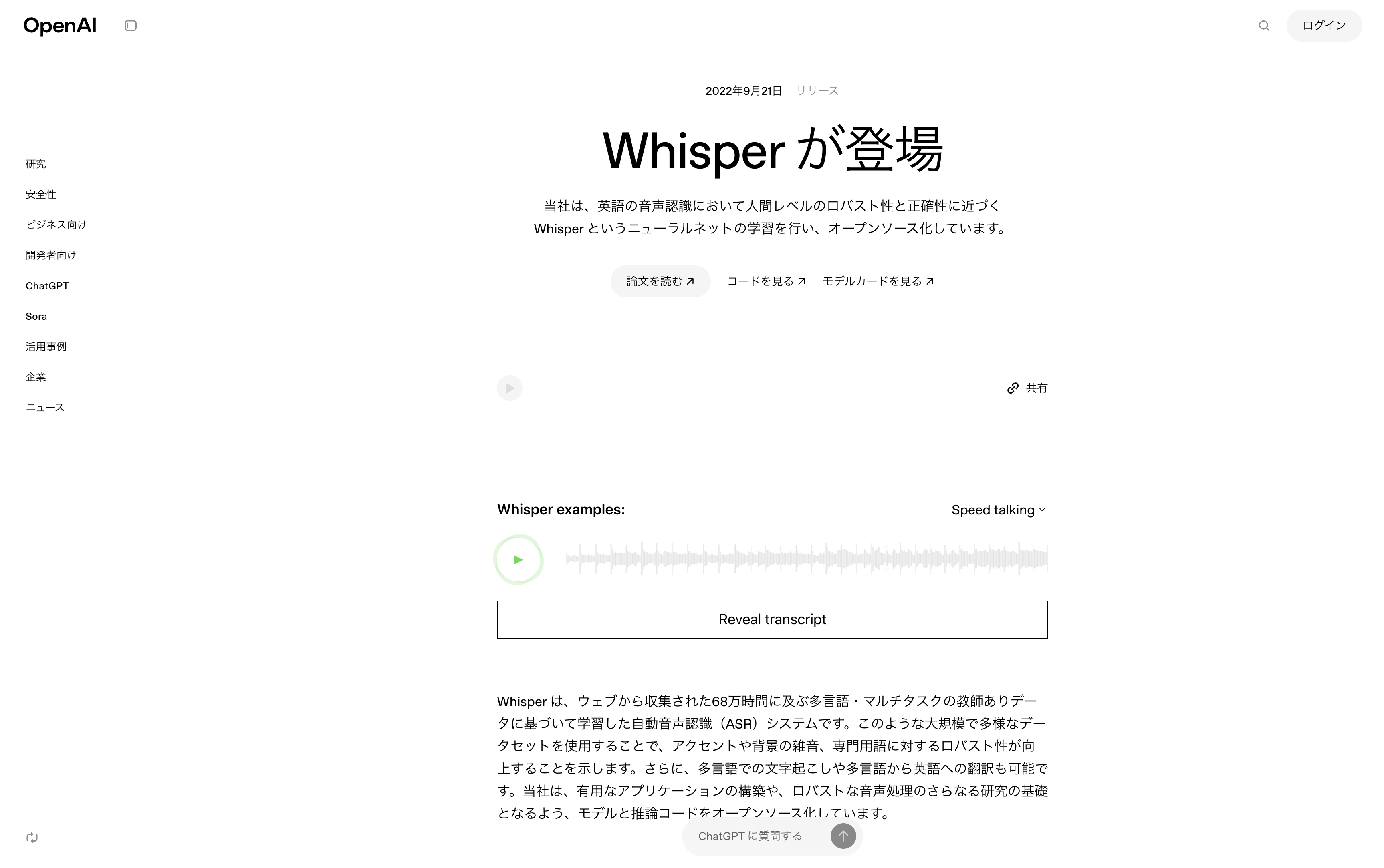 - OpenAI公式(Whisper紹介): https://openai.com/index/whisper/