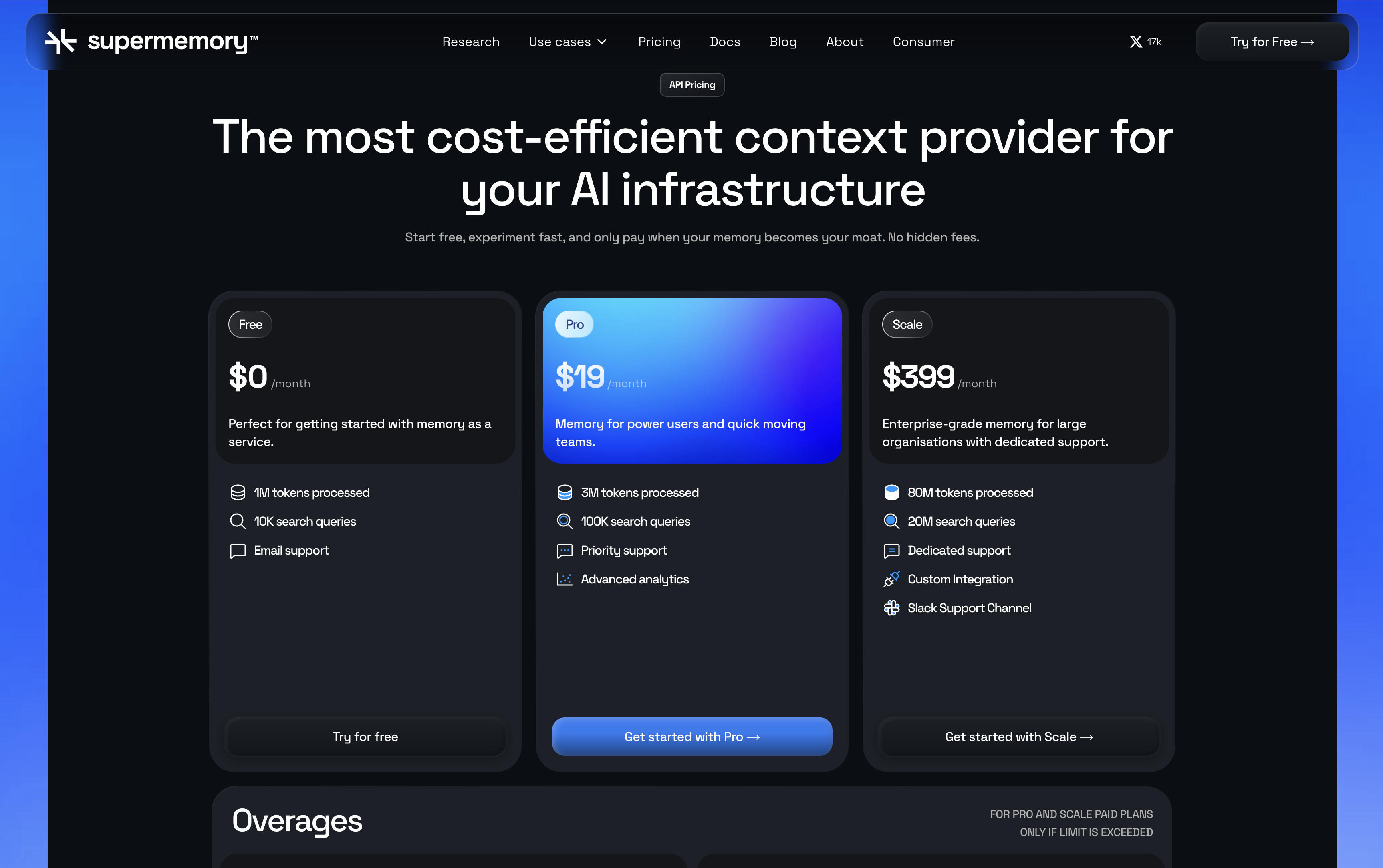 AIに長期的な記憶を持たせるためのメモリAPIを提供しているサービスです。